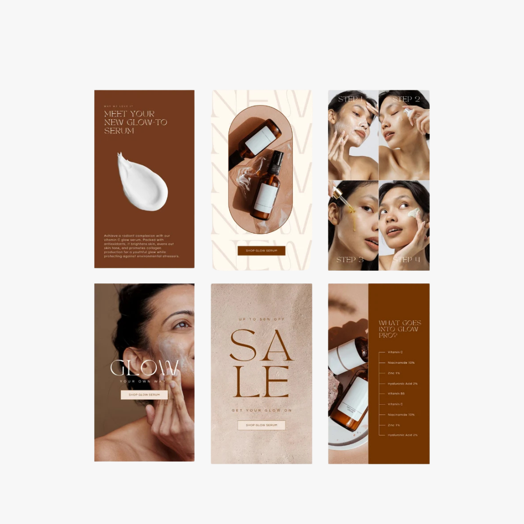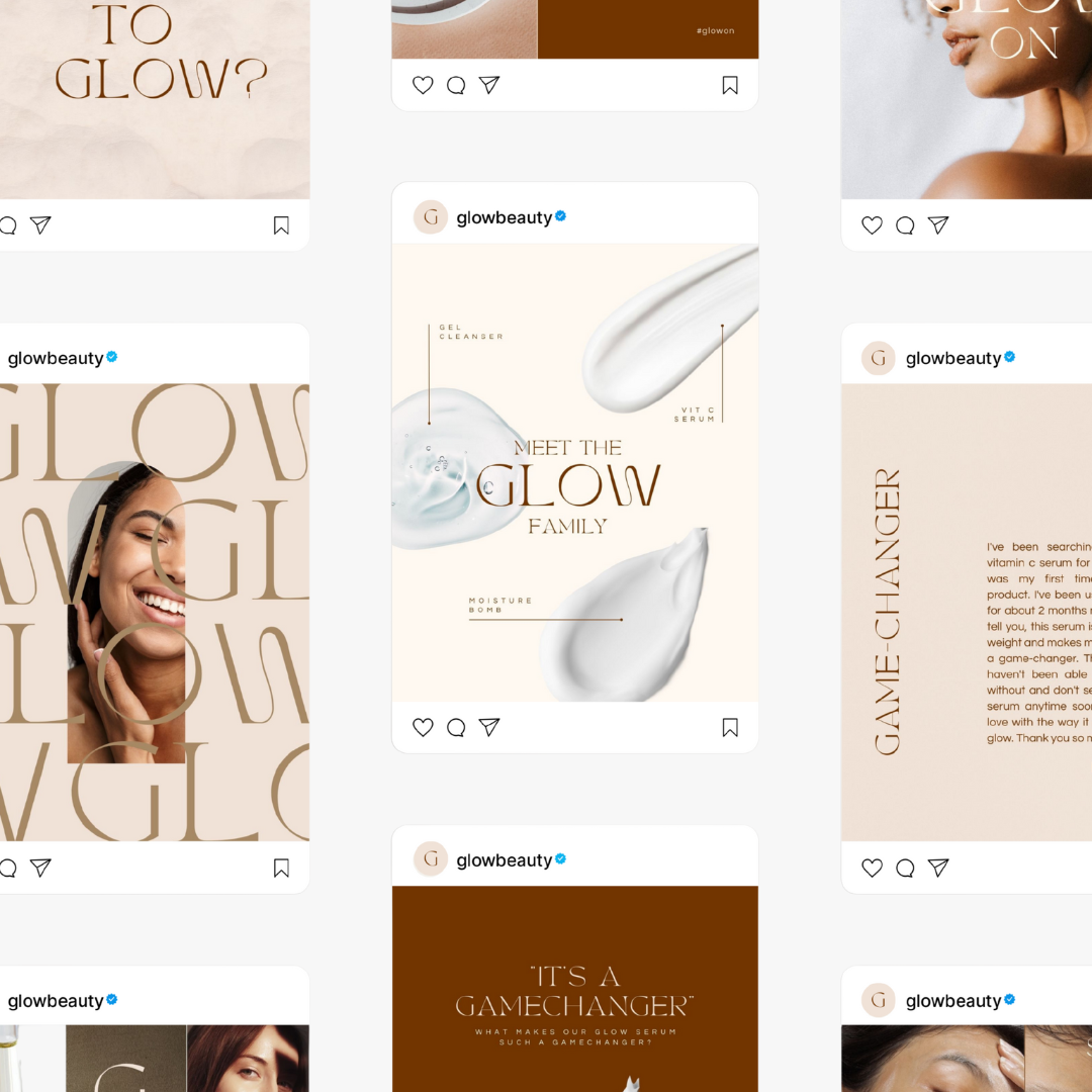 Whether you're an established brand or just getting started, our GLOW social media and email beauty templates help you develop a unique, professional and unforgettable brand that communicates trust, drives engagement (likes, comments, views and shares) and generates sales.